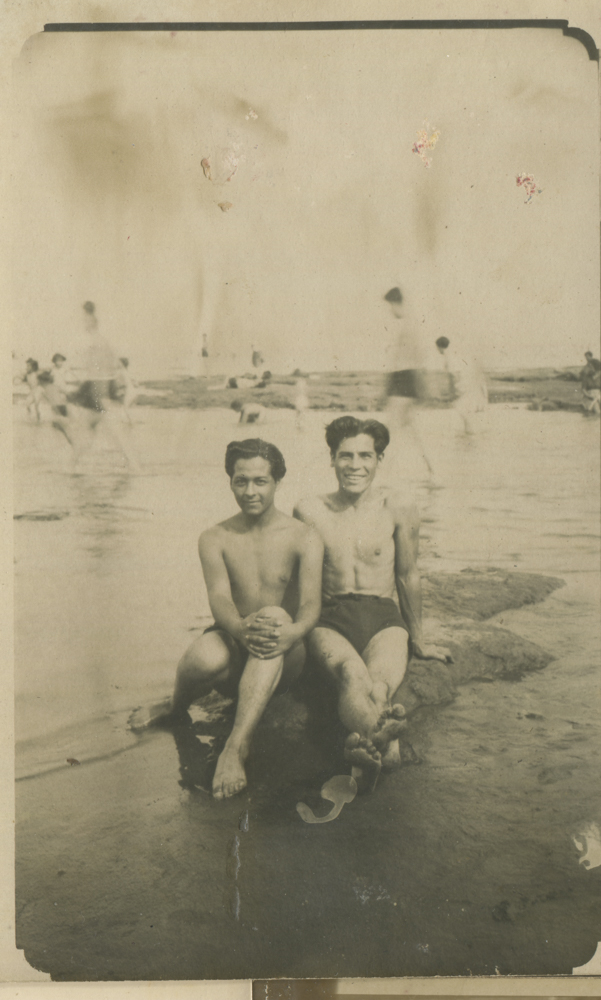 Malva junto a persona sin identificar en la playa del río en Vicente López, Buenos Aires