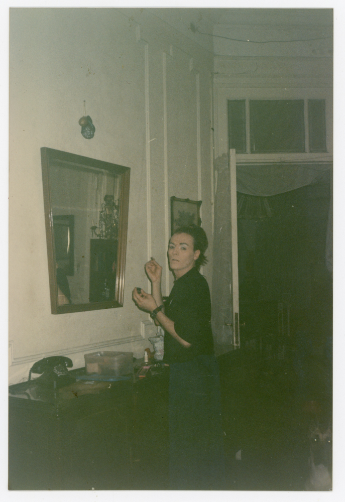 la Busato maquillandose para ir a hacer Show, en el living del depto de Entre Ríos.