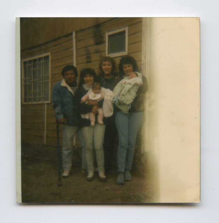 De viaje por la casa de su familia, en ese momento vivía en Neuquén. De izquierda a derecha: el cuñado Tunga, su hermana Patricia con su sobrina Luciana en brazos, Magalí y mamá Coca con su sobrino nieto Nicolás.